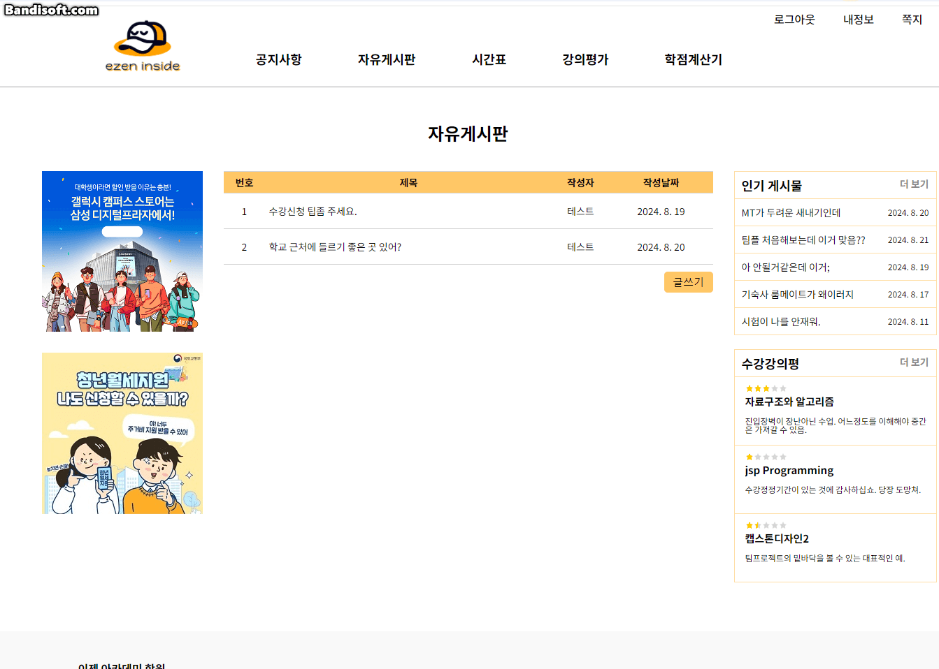 - 조원1 : 수강평가, 시험 후기 (localStorage 활용)