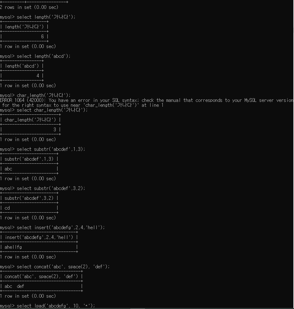 - curdate(), curtime(), now, sysdate() : 오늘 날짜 / 시간