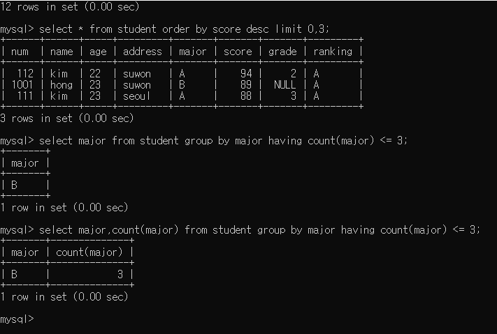 5. student 테이블의 성적이 1 ~ 3등까지만 출력