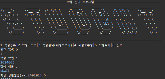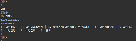 목차1.실습 1. 실습▣ StudentMainpackage jdbcStudent;public class StudentMain { public static void main(String[] args) { new StudentController(); }} ▣ Studentpackage jdbcStudent;public class Student {// sno int auto_increment,// sid int not null,// sname varchar(50) not null,// birth varchar(20),// phone varchar(20),// address text,// regdate datetime default now() private int sno; private int sid; pr..
